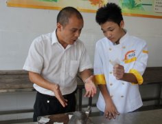 学厨师没有什么成功的捷径,唯一办法就是刻苦的练习,专心的琢磨,成就一名优秀的厨师,也离不开自己的勤学苦练。在厨师摇篮的广西华南烹饪学校,随处可以看到同学们刻苦学艺的身影。 同学们认真练习抛锅 朱老师正在