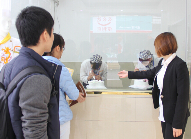 咨询老师带领学生参观西点展示