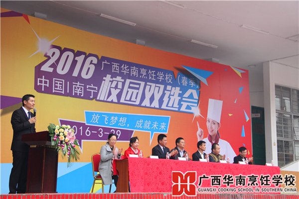 3月29日上午,广西华南烹饪学校2016年春季校园双选会在学校足球场举行。广西华南烹饪学校的毕业生们也充分利用此次机会,为自己寻求就业机会。早晨8点,双选会现场正在进行着各方面的准备工作,用人单位陆续到场,开
