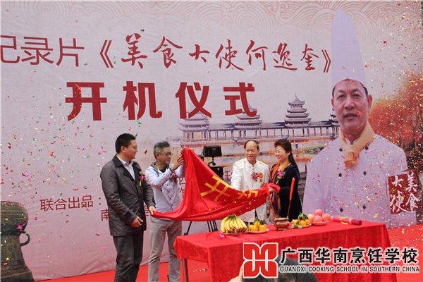 近日,大型记录片《美食大使何逸奎》开机仪式在广西华南烹饪学校隆重举行。何逸奎大师、广西烹饪餐饮行业协会秘书长曾大文先生、南宁三春影视公司总经理,本片导演殷新春先生、何逸奎大师弟子、广西华南烹饪学校副校